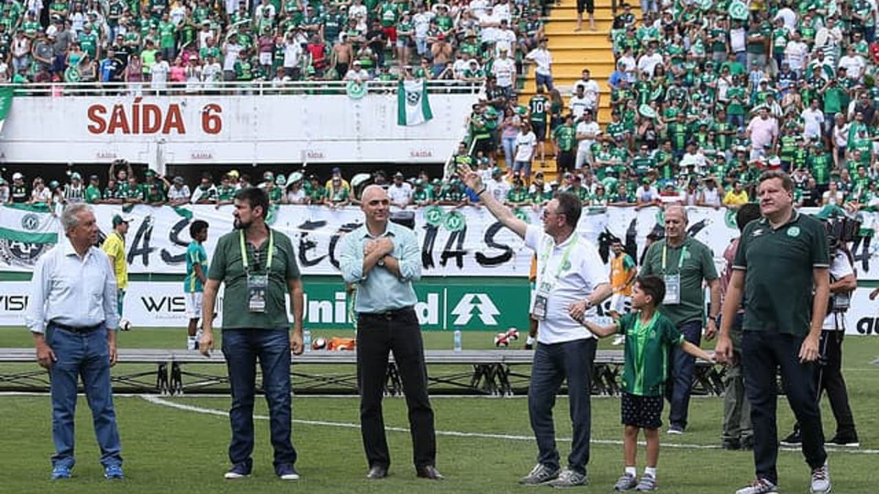 Presidente do Palmeiras recebe presente em Chapecó após amistoso